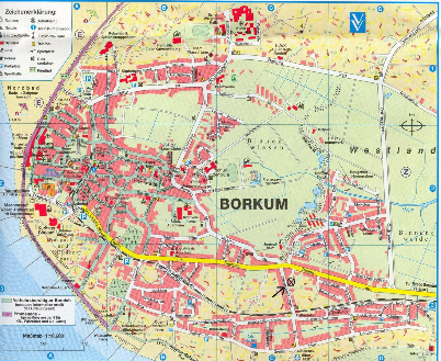 Der Jakob-van-Dyken-Weg gehört zur sog. „blauen Zone“ (Bereich mit Nachtfahrverbot), d.h. Sie benötigen für die Anfahrt auf Borkum keine besondere Ausnahmegenehmigung. Außerdem können Sie tagsüber (7.oo bis 21.00 Uhr) Ihr Fahrzeug benutzen z.B. für Fahrten bis zu den zentralen Parkplätzen im Ort, ins Ostland oder zum FKK-Strand. Aktuelle Auskünfte über die Saisonverkehrsbeschränkung erhalten Sie beim Wohnungsanzeiger der Wirtschaftsbetriebe NSHB GmbH oder beim Ordnungsamt der Stadt Borkum.